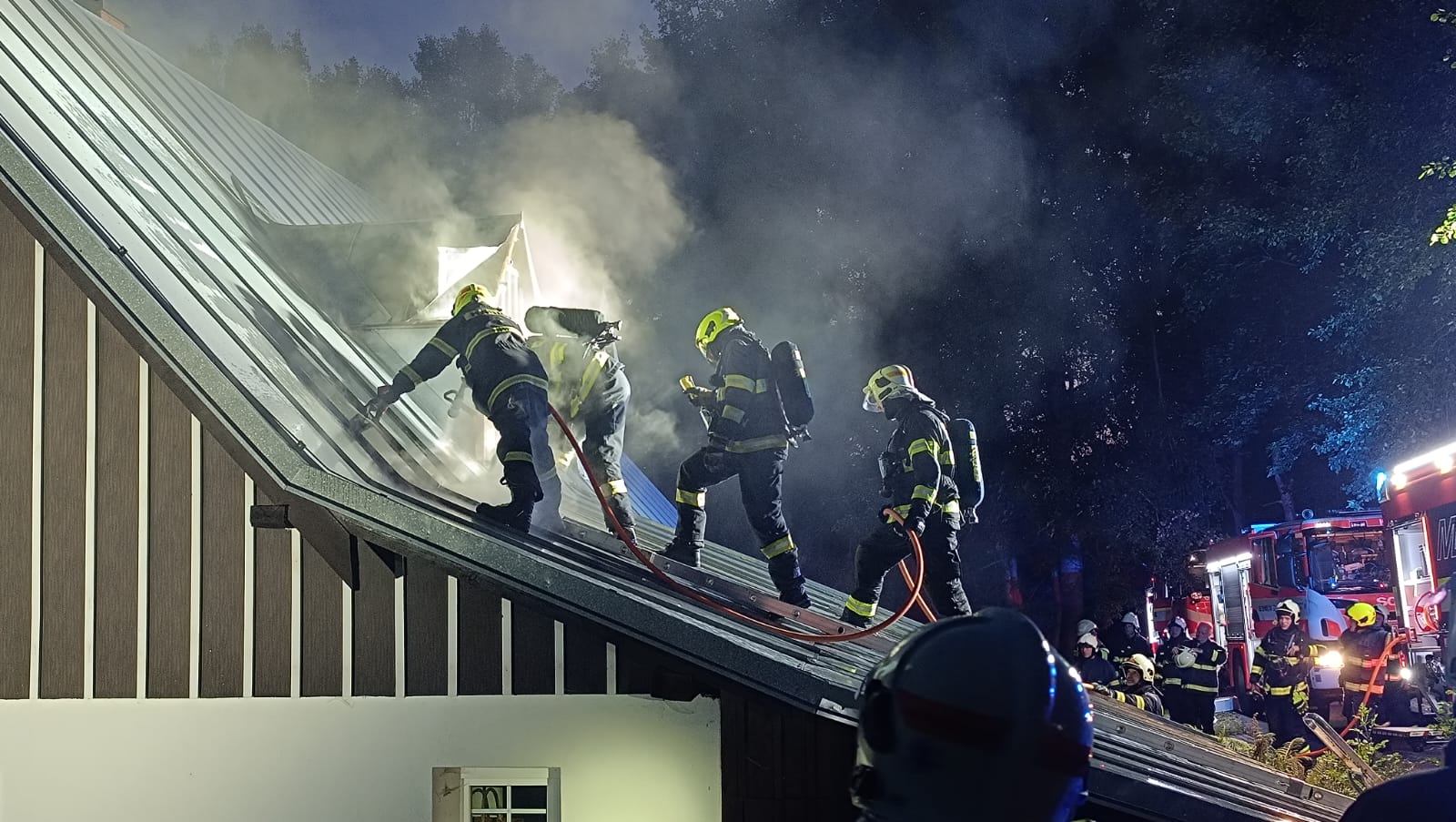 54/2024 5.8. ve 20:46 hod. Požár izolace střechy, Jestřabí v krk.